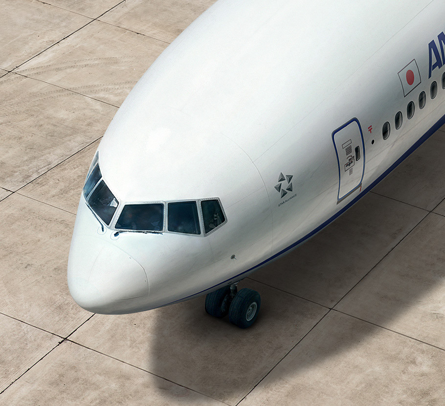When you don't find a photographer that can give you a perfect shot through a specific angle, we try to fake it, in a good way of course. 3D model of an ANA airplane was created and used for a new website for ANA Airways.