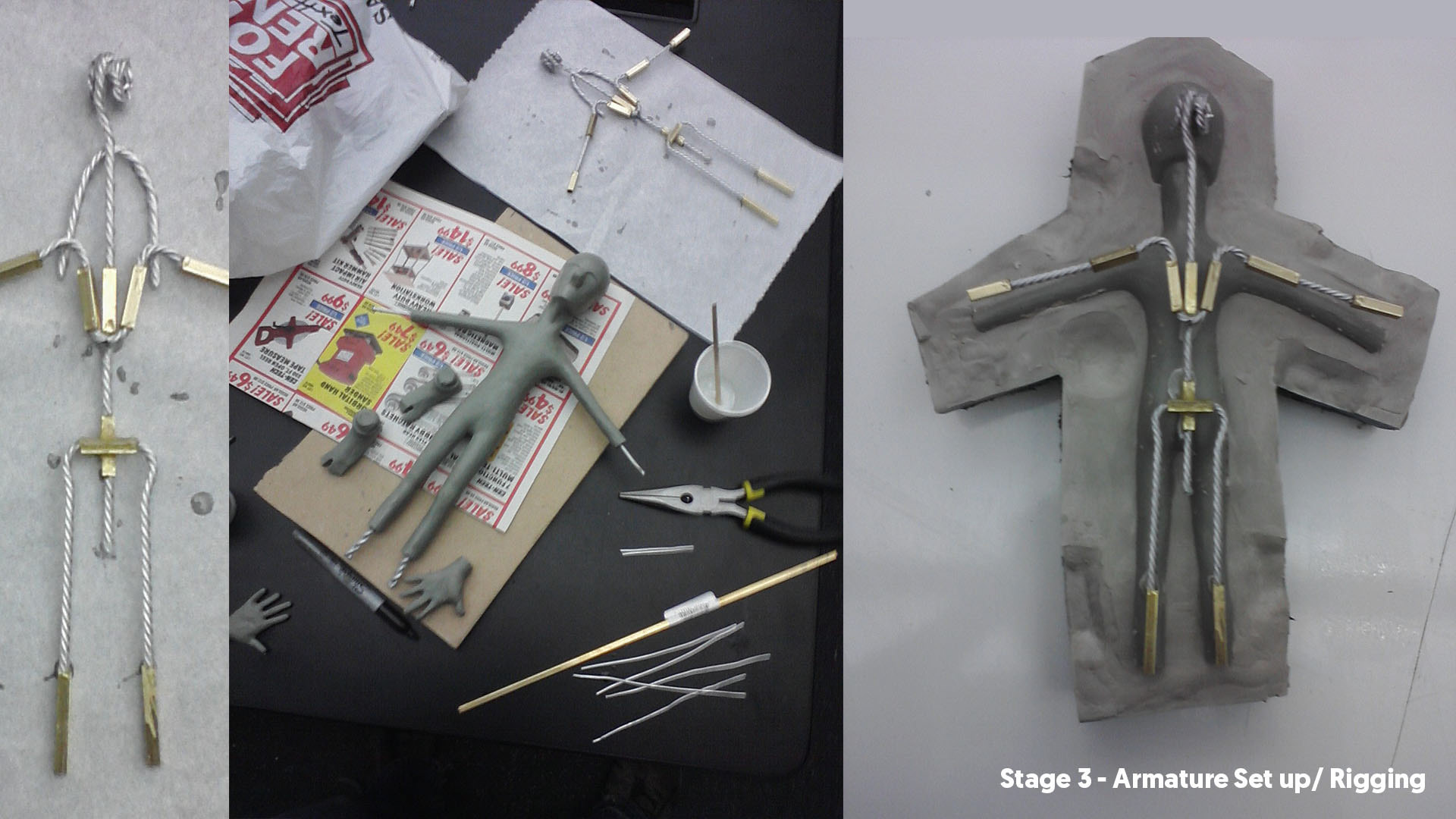 tools used . Clay, armature wire, flexi foam, plaster of paris, lights and digital camera