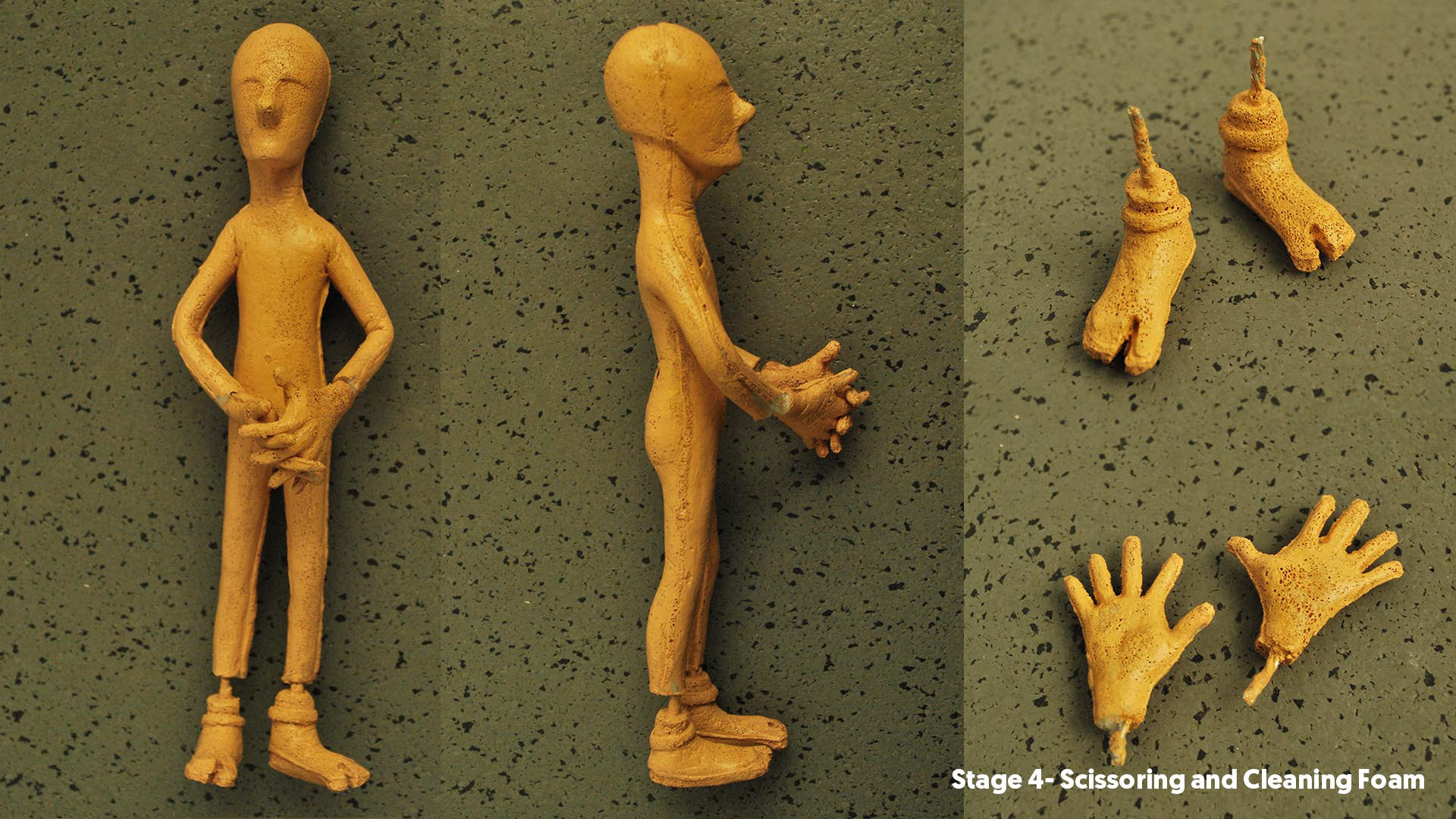 Stage 4. Pouring Foam with arranging armature inside. Giving bone structure to the character foam body.